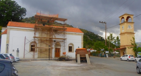 Es ist ein Man sollte auch einen Blick auf die Kirche werfen. Typisch für Kreta ist der entfernt von dem Kirchengebäude stehende Kirchturm.