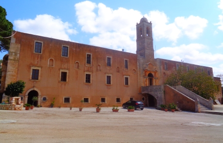 Im Kloster wird ein bekannter Wein und gutes Olivenöl hergestellt (beides im biologischen Anbau mit traditionellen Sorten). Das gute Klima und die fruchtbaren Böden um das Kloster sind ideal für den Weinanbau und die Olivenbäume. Es werden traditionelle Sorten angebaut. Eintrittspreis und Öffnungszeiten Öffnungszeiten Agia Triada Kloster: Jeden Tag von 8 Uhr bis Sonnenuntergang. Im Winter gibt es eine Mittagspause von 2 Stunden (14 Uhr bis 16 Uhr). Wer ganz sicher gehen will, kann auch vorher anrufen: Telefon: 0030-2821063572 Eintrittspreise Agia Triada Kloster: Auf einigen Internet-Seiten steht, dass das Kloster Agia Triada 2 Euro Eintritt kostet, Kinder unter 18 Jahre müssen nichts bezahlen. Bei unserem Besuch außerhalb der Saison Anfang 2020 war niemand am Eingang und es gab auch kein Schild über die Preise. Wir konnten Agia Triada also umsonst besuchen. Allerdings war das Kloster-Museum nicht geöffnet. Anfahrt Auto: Man fährt von Chania Richtung Flughafen. Ist man auf der Halbinsel Arkodiri nimmt man nach einige Kilometern die Abzweigung links nach Stavros. Etwa 5 Kilometer vor Stavros gibt es einen Wegweiser zum Kloster Agia Triada. Natürlich sind die Wegweiser in Kreta auf Griechisch und Englisch. Kloster heißt auf Englisch "Monastery" auf Griechisch "Monastiri" (μοναστήρι).. Wo ist das Kloster ?