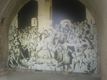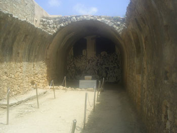 Die aufständische Kreter versammelten sich im November 1866 im Kloster. Am 8. November begannen die Türken das Kloster Arkadi zu stürmen. Der Angriff wurde zunächst unter schweren Verlusten auf beiden Seiten zurückgeschlagen. Als die Besatzer am 9. November ins Kloster eintragen, versammelten sich die meisten Kreter im "Arsenal" (Pulverraum). Dies war ein Raum, der mit Sprengstoff gefüllt war.