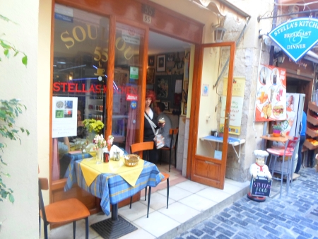 In der Stadt Rethimno kann man in mindestens 150 Lokalen essen gehen. Wir kennen natürlich bei weitem nicht alle. Im Folgenden haben wir einige unserer Lieblingsrestaurants zusammengestellt. Zu den ausgezeichneten Restaurants in Rethimnon zählen zwei Tavernen in der Nähe zum Eingang der Fortezza, der mächtigen Burg, die über der Stadt thront. Das Castelvecchio ist eines unserer absoluten Favoriten. Probieren sollte man im Castelvecchio beispielsweise Kaninchen in Tomatensoße, das Moussaka oder eines der vielen Fischgerichte. Uns hat es im Castelvecchio bisher immer geschmeckt. Nebenan im Vasillis sind unter anderem die frischen Fischgerichte und Salate ebenfalls vorzüglich. In einer kleinen Gasse in der Altstadt findet man das erstklassige Restaurant La Boheme (Souliou-Straße). Schon beim Lesen der Vorspeisen auf der Speisekarte merkt man schnell, dass es hier keine Durchschnittsküche gibt. Man findet zum Beispiel gefüllte Zucchiniblüten, Schnecken in Rosmarin oder Miesmuscheln. Das La Boheme ist ein kulinarisches Erlebnis. Hier lohnt es sich ein paar Euro mehr auszugeben als in einer einfachen Taverne. Preiswert und sehr gut speist man im Parastratima mitten in der Altstadt. Man findet es etwas versteckt, nur 20 Meter vom zentralen Rimondi-Brunnen entfernt. Man geht rechts vom Brunnen durch das kleine Tor und danach ein paar Meter nach rechts. Vorzüglich sind die Zucchini-Bällchen als Vorspeise. Lecker waren auch unser Moussaka und die Kalamari. Das Parastratima ist ein gutes Restaurant, dass mindestens 30 % billiger ist als vergleichbare Tavernen direkt in den extrem touristischen Gassen nebenan oder gar am Hafen. Zu den preiswerten Tavernen in Rethymno zählt mein Stammlokal Stella's Kitchen, in derselben Gasse wie das La Boheme (Straßenname: Souliou). Es gibt zwar eine Speisekarte, diese benutzt aber kaum jemand. Man geht einfach zur Vitrine und lässt sich die aktuellen Speisen des Tages erklären. Meist gibt es etwa 8 bis 10 verschiedene Gerichte und etwa 5 Beilagen. Die nette Stella stellt die Speisen ausführlich vor, sie kann etwas Deutsch und spricht gut Englisch. Die großen Portionen kosten meist nur 6 bis 7 Euro. Brot und gekühltes Trinkwasser sind umsonst. Nirgendwo isst man preiswerter und besser in Rethimnon als bei Stellas Kitchen. Das Lokal hat sich zu einem Treffpunkt der Deutschen und Engländer, die in Rethymno wohnen, entwickelt. Es ist immer etwas für Vegetarier dabei, fast alle Speisen sind gekocht. Pommes und ähnliches gibt's bei Stella nicht.